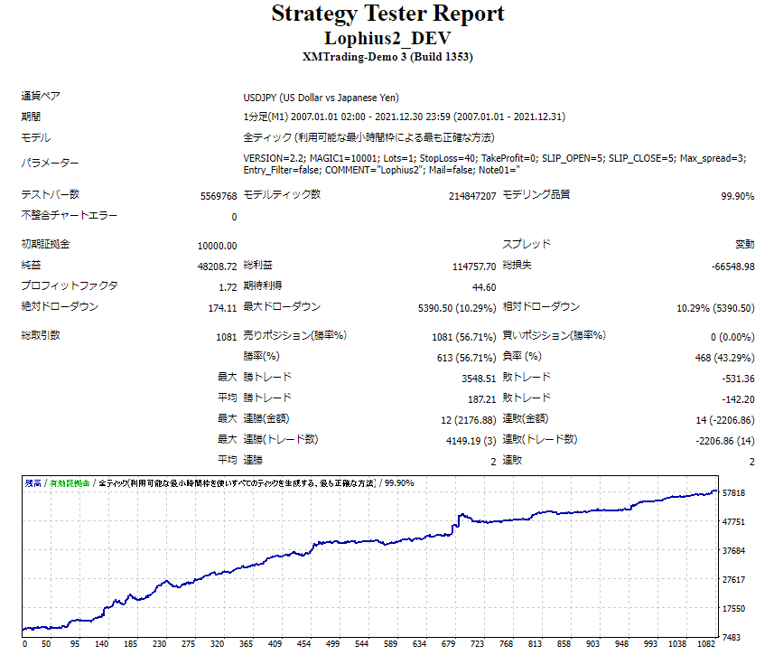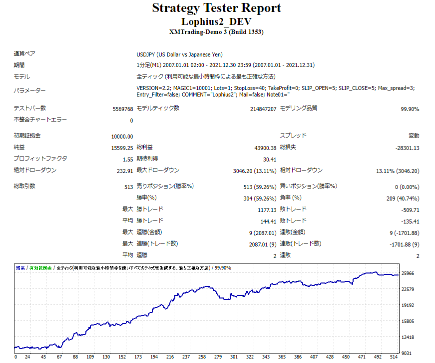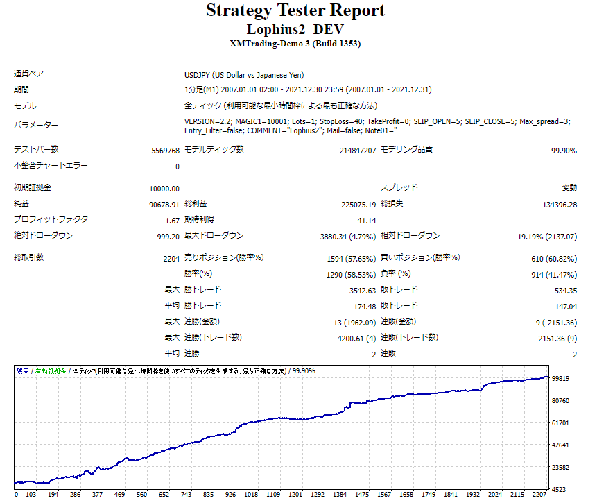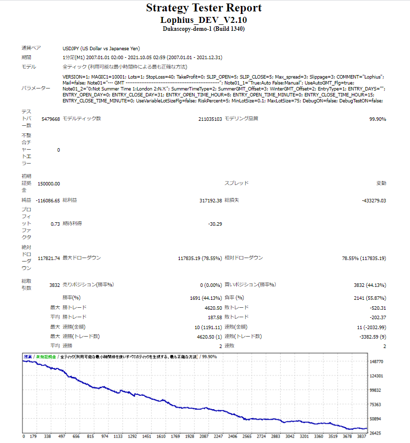 いくつかバックテストを行いましたが納得できるものはありませんでした。 買おうと思ったものは「Lophius」が初めてです。