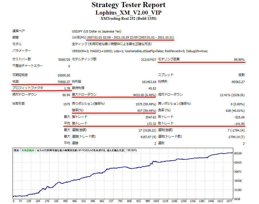 「Lophius」はフォワードテスト、バックテスト、ロジックと全データが公開されているEAです。納得いくまでとことん成績を見比べてください。 |