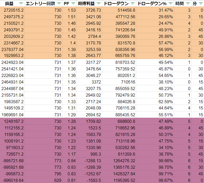 この3つのロジックを組み込んだ条件でバックテストをとった結果が以下の通りです。