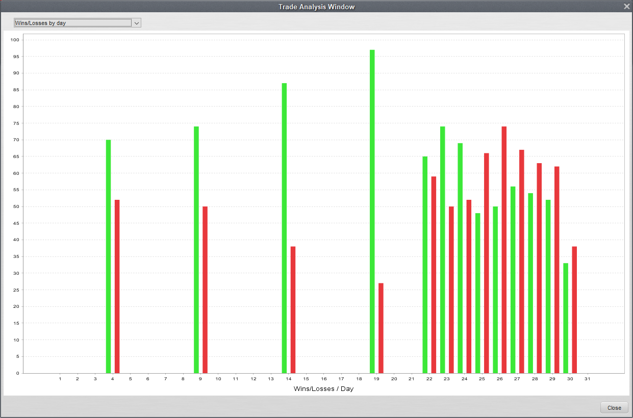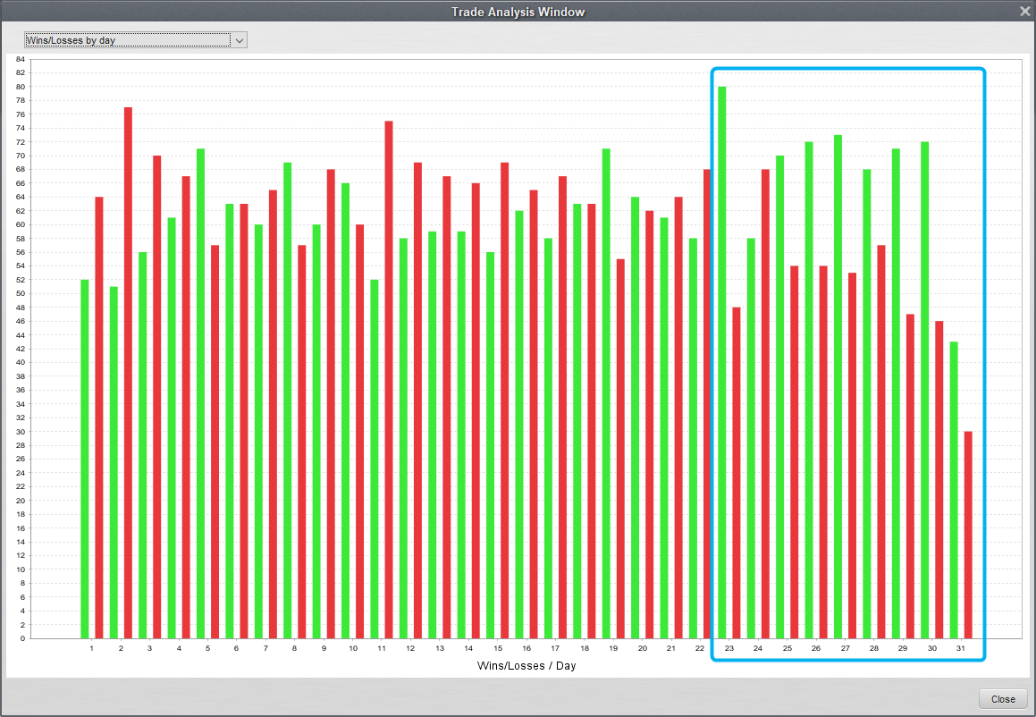 さっきも言った通りロジックが完全に明らかになっているので、 実際にチャート上で自分で検証してみました。 マーク・ダグラスが「ゾーン」で 「新しいロジックを試すときは少なくとも20回のトレードは検証すべき」 と言っているので、多めに30回程のトレードをチャートで検証したら、 確かに優位性があり納得できました。