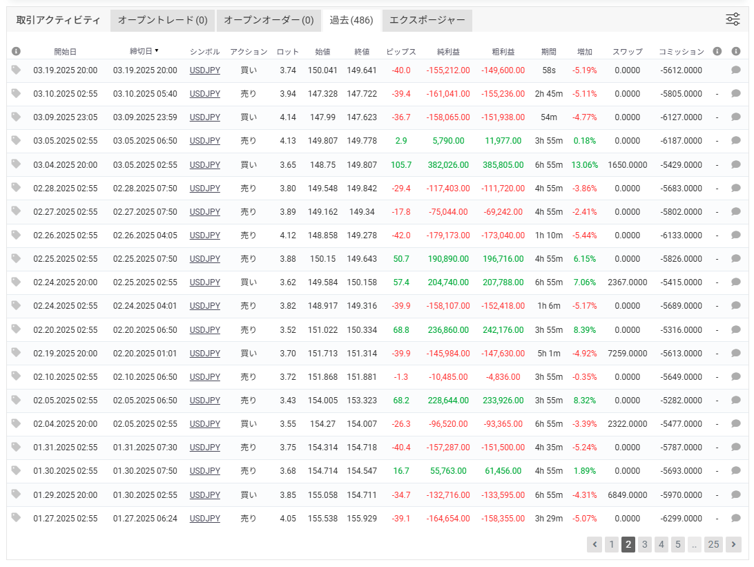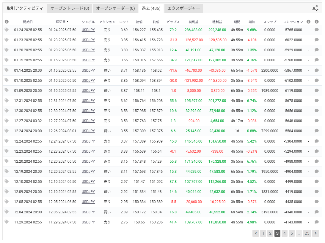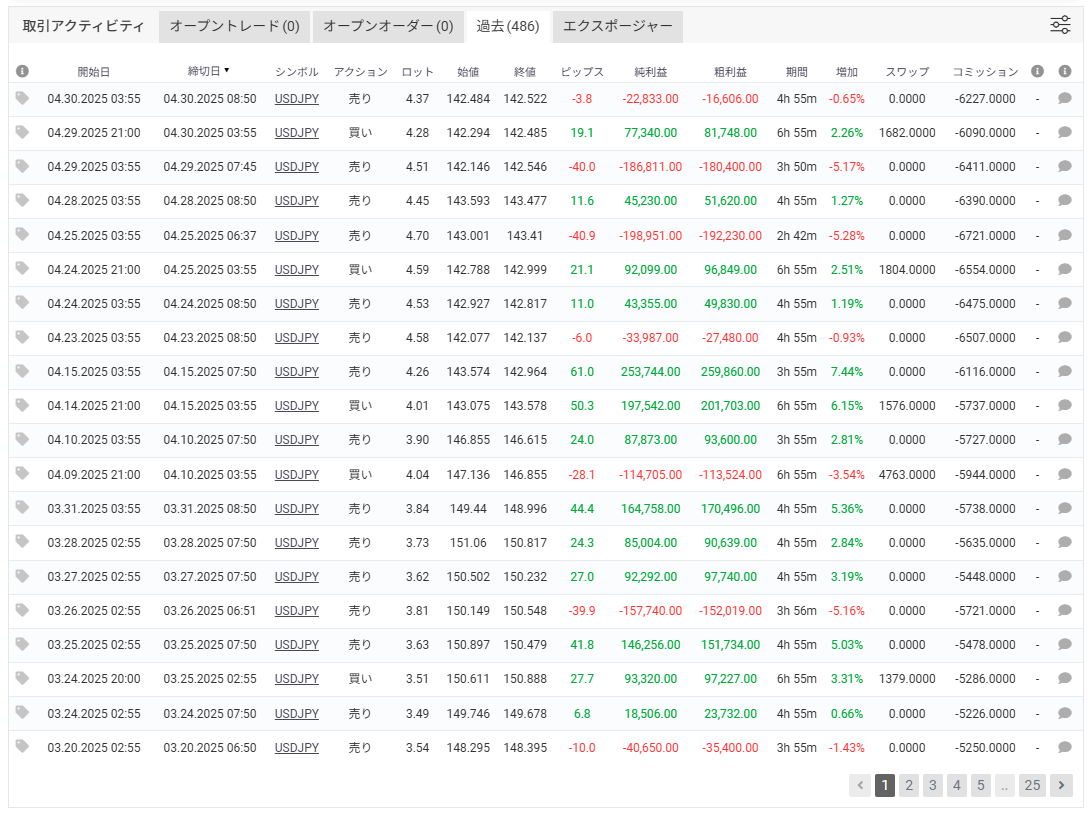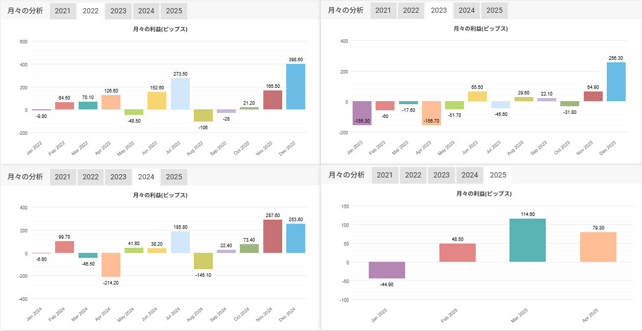 2021年11月~2025年4月リアル口座トレード成績 |